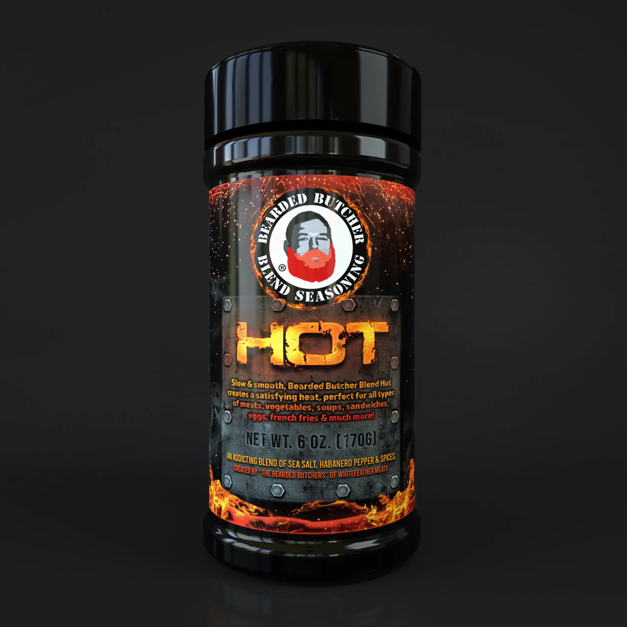 Slow & Smooth, The Bearded Butcher's Hot Blend, with its habanero peppers, builds up to a satisfying, whole-mouth heat and then lets go. Add it to any dish that needs a healthy kick and watch as it ignites your taste buds. This seasoning is a versatile powerhouse, great for a rub on grilled or smoked chicken wings, kicking up the heat on your Chili Con Carne, topping on baked potatoes with sour cream, enhancing your spicy stir fry, mixing into breakfast burritos, and perfectly seasoned burgers!Â