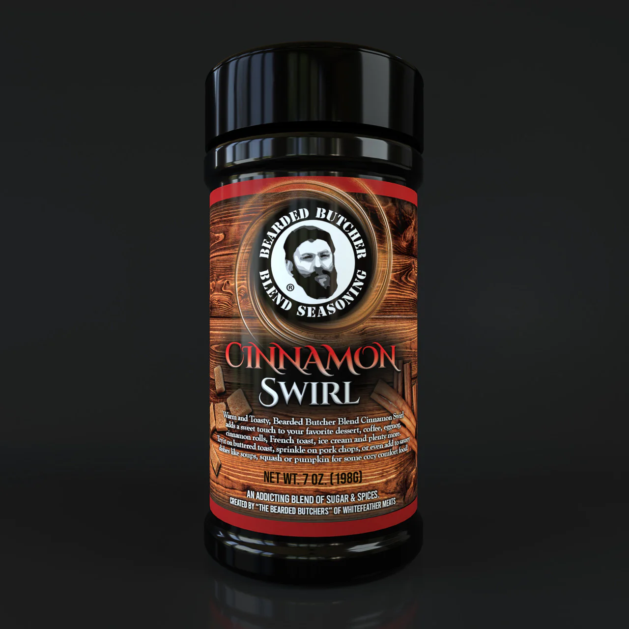Warm & Toasty, The Bearded Butcher's Cinnamon Swirl Blend is the perfect seasoning for adding a sweet touch to your favorite desserts, coffee, eggnog, cinnamon rolls, French toast, ice cream, and more. Try it on buttered toast, sprinkle on pork chops, or add to savory dishes like soups, squash or pumpkin for some cozy comfort food! We set it beside our toaster and it goes on everything that comes from it.