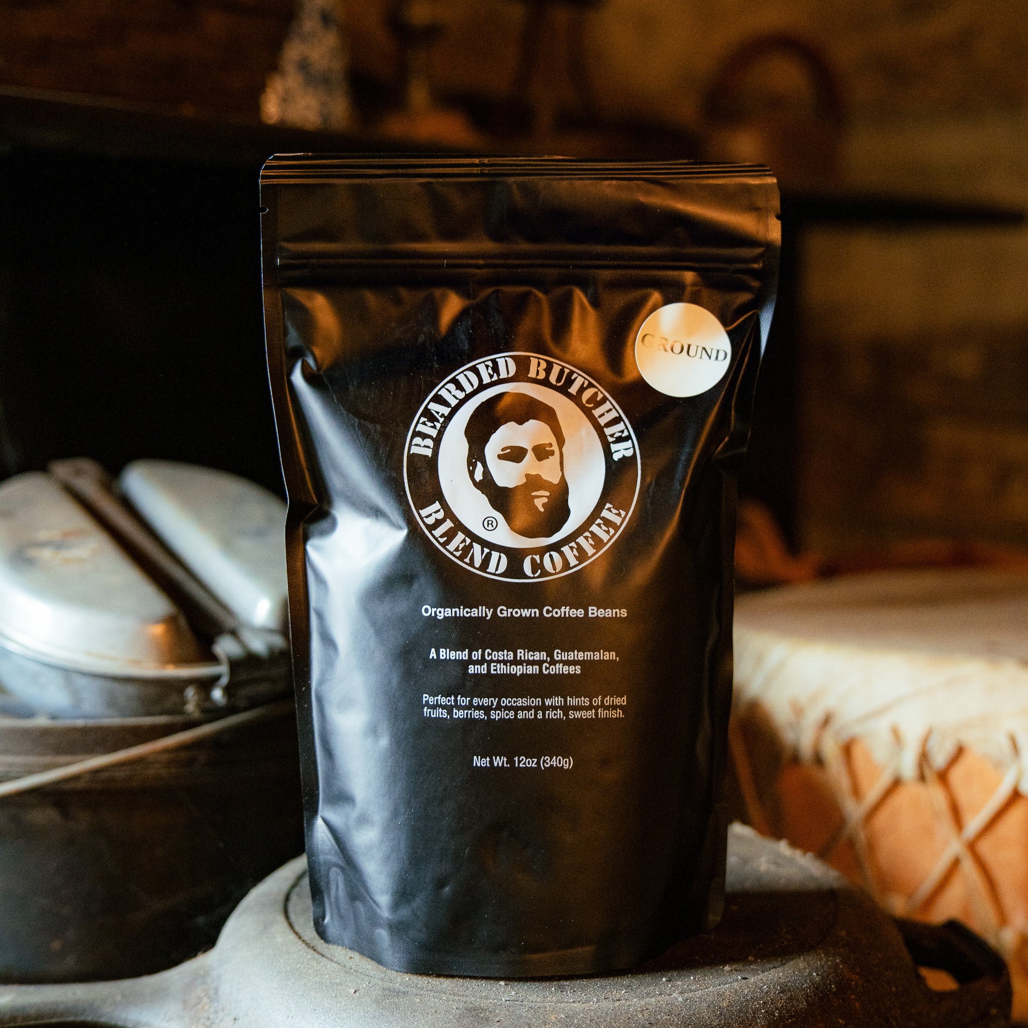 A blend of Costa Rican, Guatemalan, and Ethiopian coffees. With a hint of dried fruit, berries, spice, and a rich sweet finish, Bearded Butcher Blend coffee is the perfect drink for hard-working men and women around the world! One sip and you'll never go back!